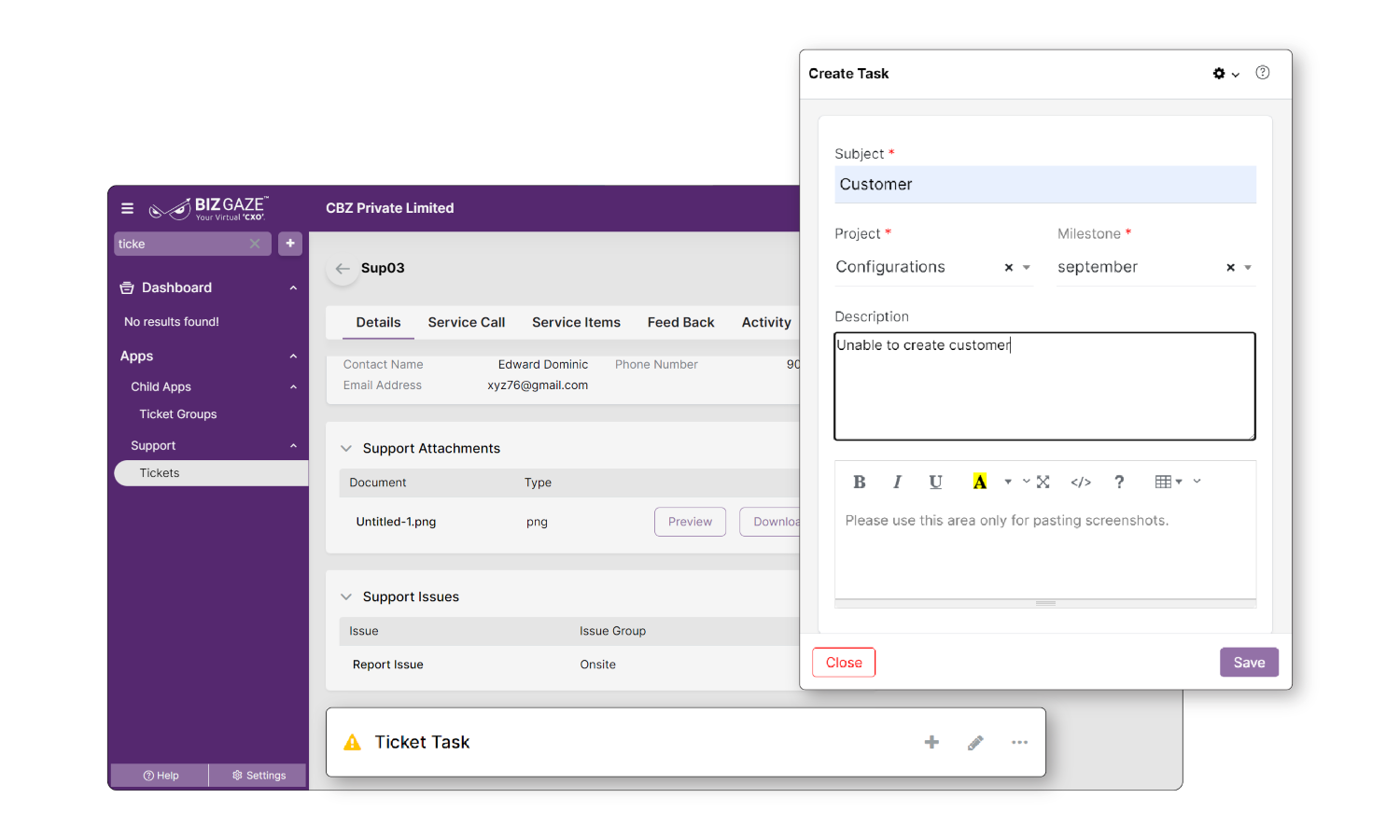 It's not just ticket handling; it's a proactive approach to problem-solving. With our platform, you can seamlessly transition a ticket into a task, mobilizing your team for immediate action. This streamlines your process and ensures that key issues are addressed with the urgency and attention they deserve.